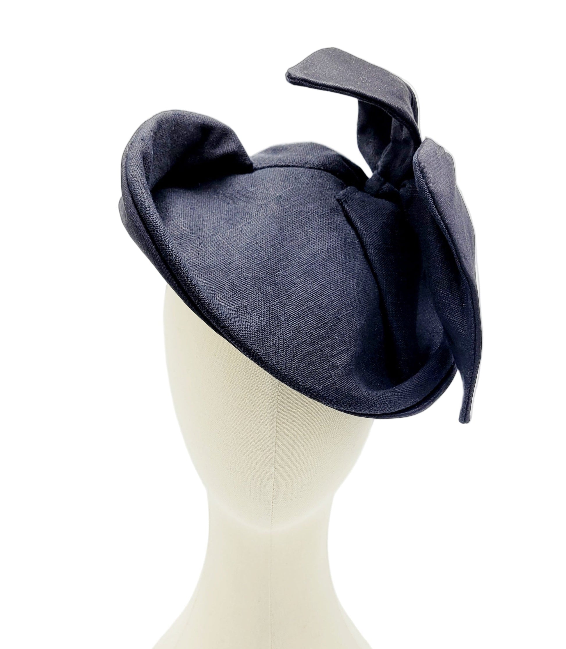 Sculpted Twist Fascinator with Satin Lined Base and Elastic Headband. Hand Crafted in Bronx, NY.