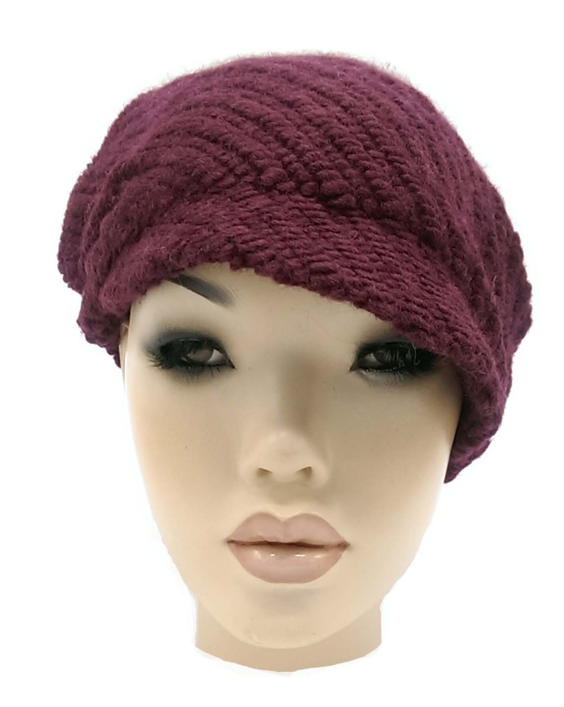 Lined Burgundy Chunky Bias Rib Italian Wool Knit Hat, Fall/Winter. Beanie Crown Height, Soft Stingy Brim, Elasticized back, Sweatband. Satiny Lining. *Large sizes available. Made in NYC.