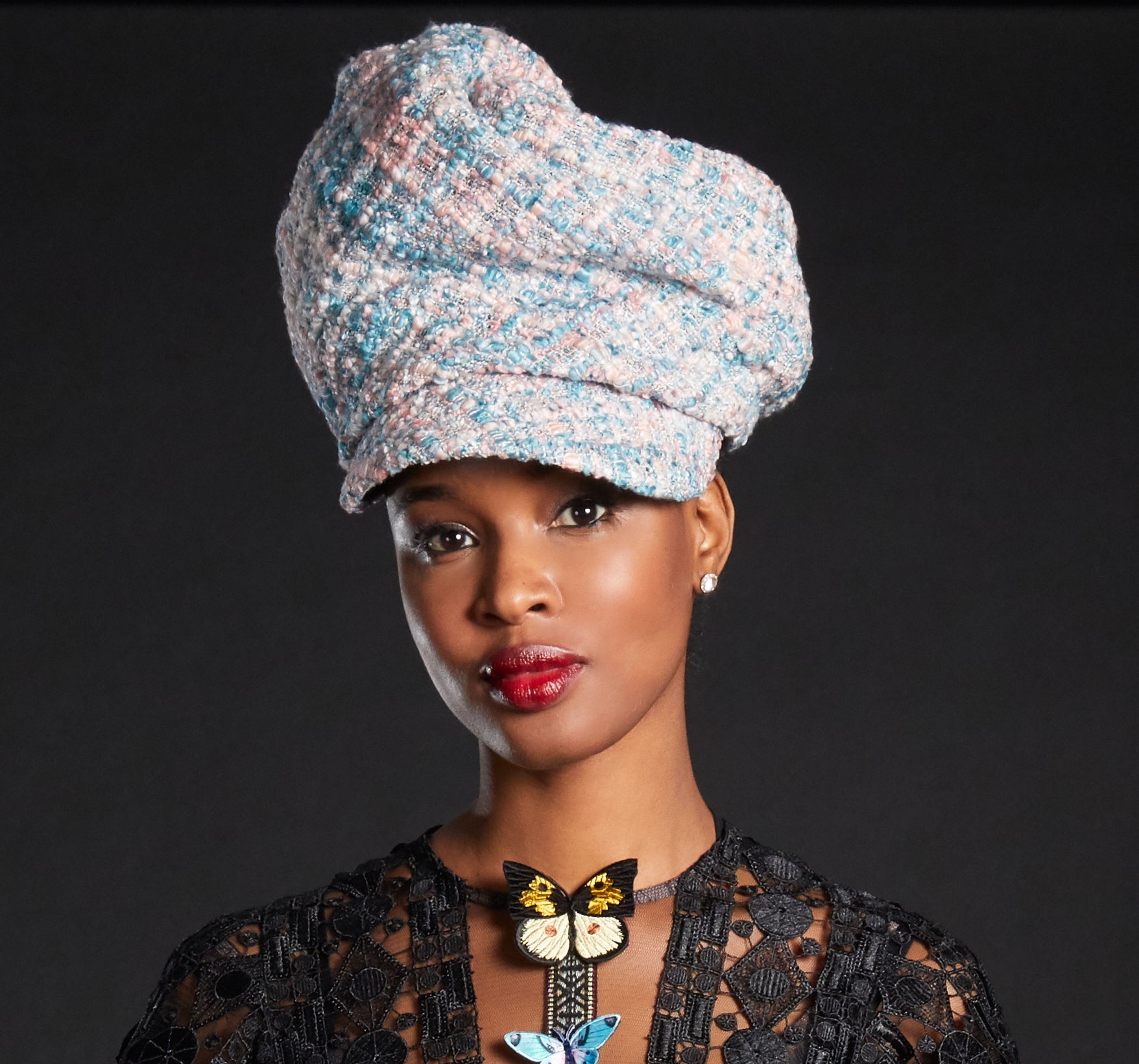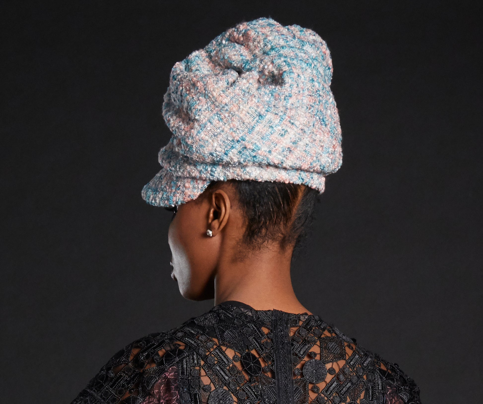 Aqua & Salmon Chunky Italian Wool Boucle, Oversized Tall Lined CRUSH hat with Encased Elastic Back for Comfort and Great Fit. Roomy, Wide Crown is Stabilized. *Large sizes available. Made in NYC.