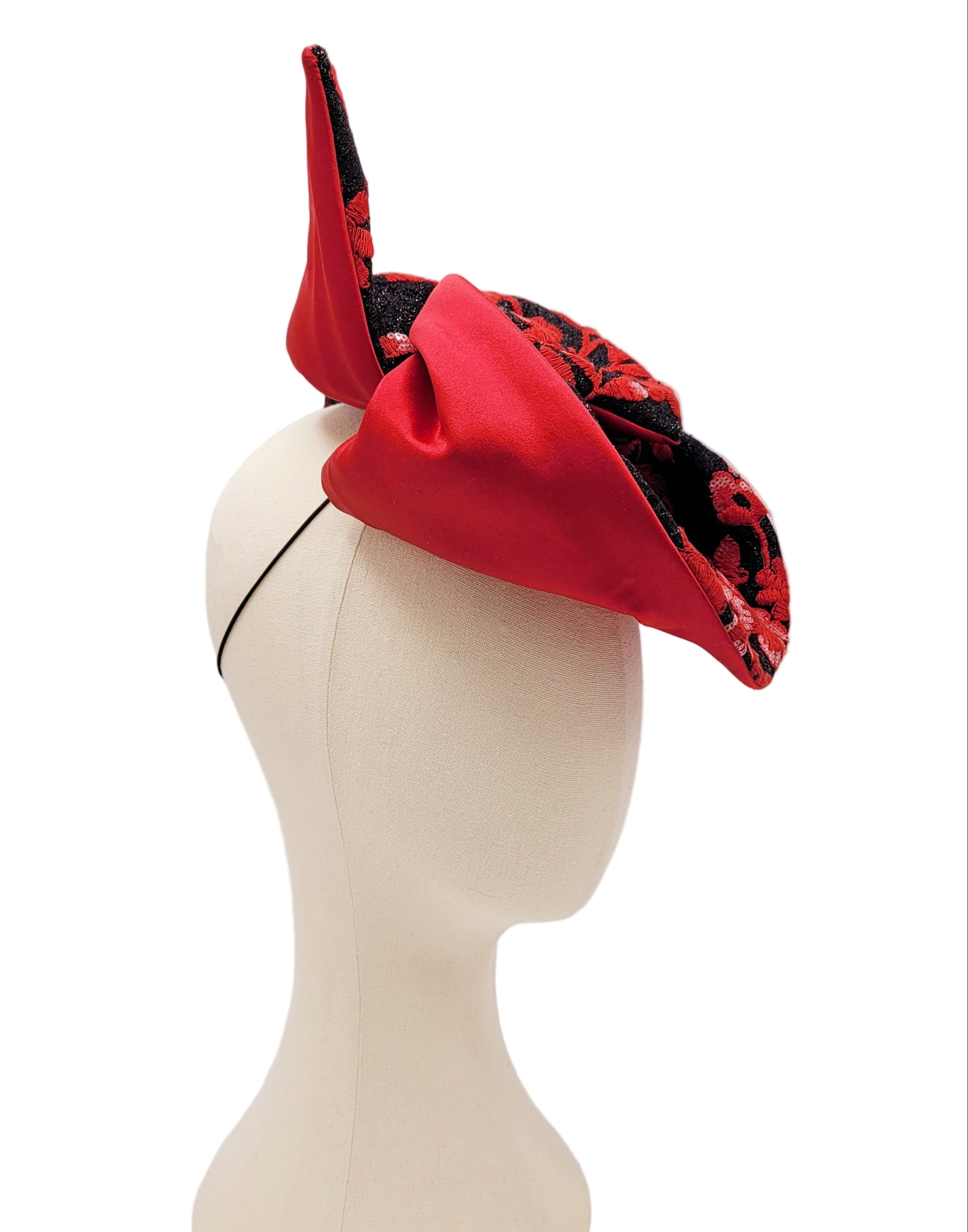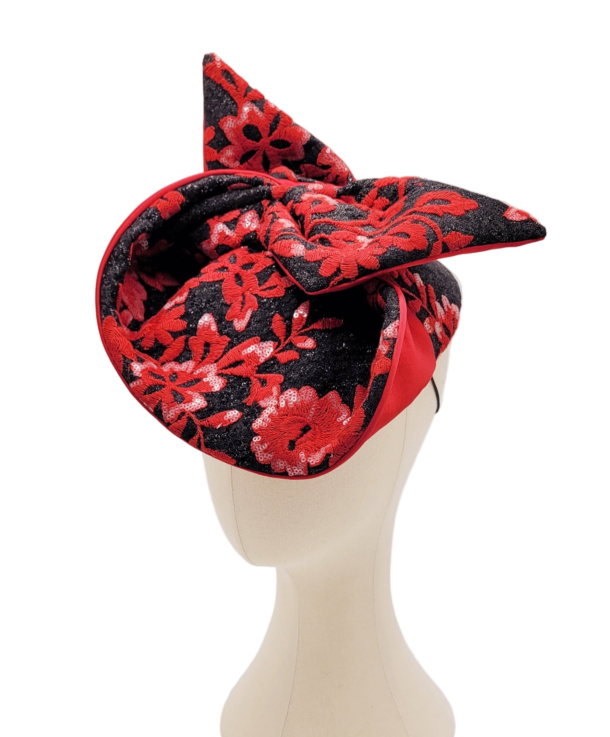 1940's Inspired Sculpted Twist Fascinator. Satin Lined Base and Elastic Headband. Hand Crafted in Bronx, NY.