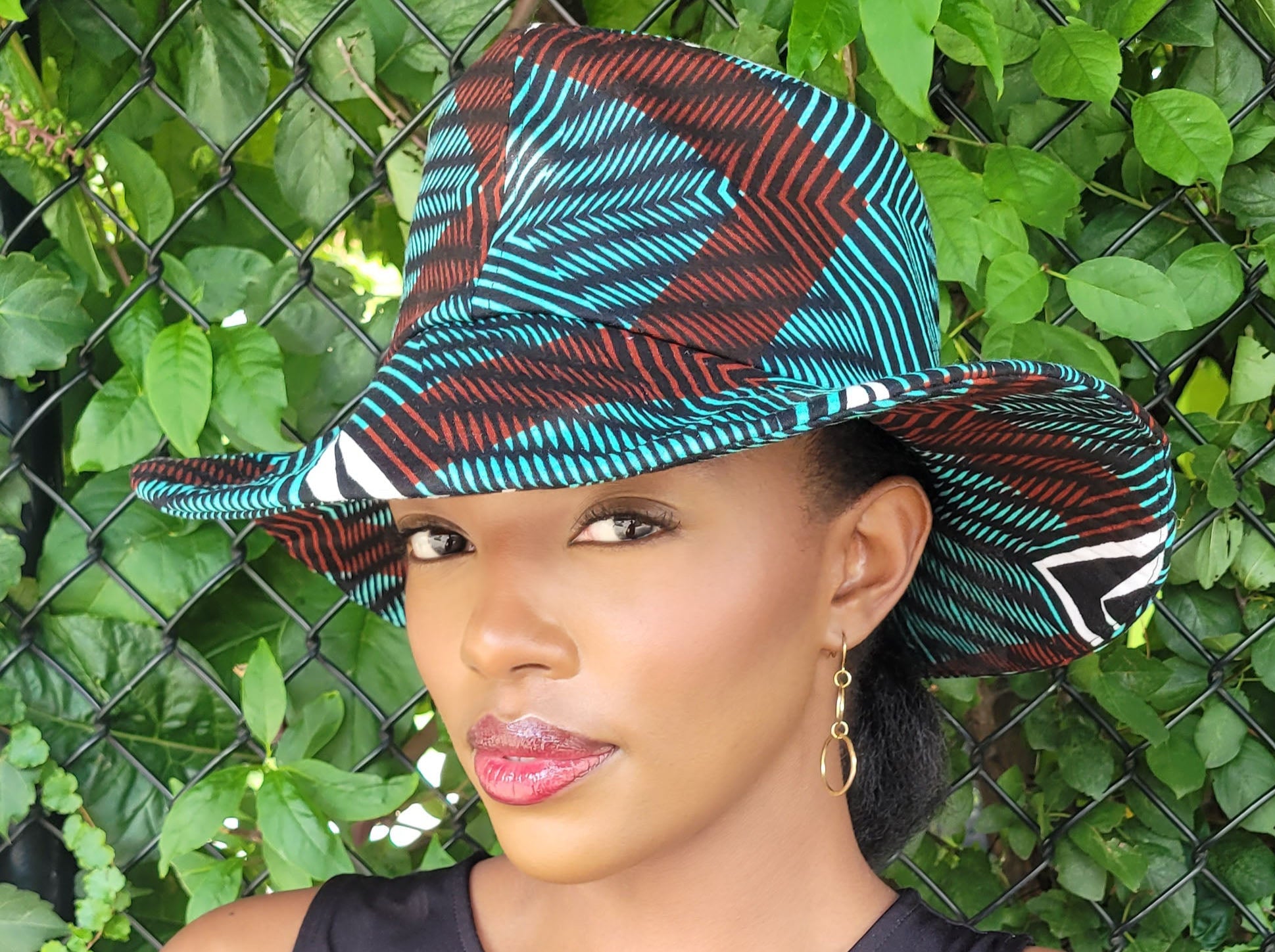 100% Cotton Lined Travel Hat in Green Graphic Print. Soft Structured Crown and Wide Brim. Packable with Adjustable Fit Sweatband. XS and XL sizes available. Made in NYC.