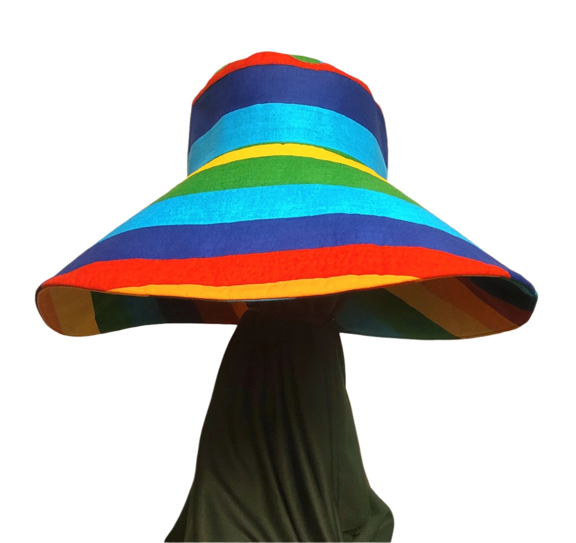 Pride Rainbow Striped Print, Crushable Lined Crown 100% Cotton Sun Hat, Soft 7" Front Brim. Easy Packable and great for Travel and Sun shade, Adjustable Fit Sweatband. Made in NYC.